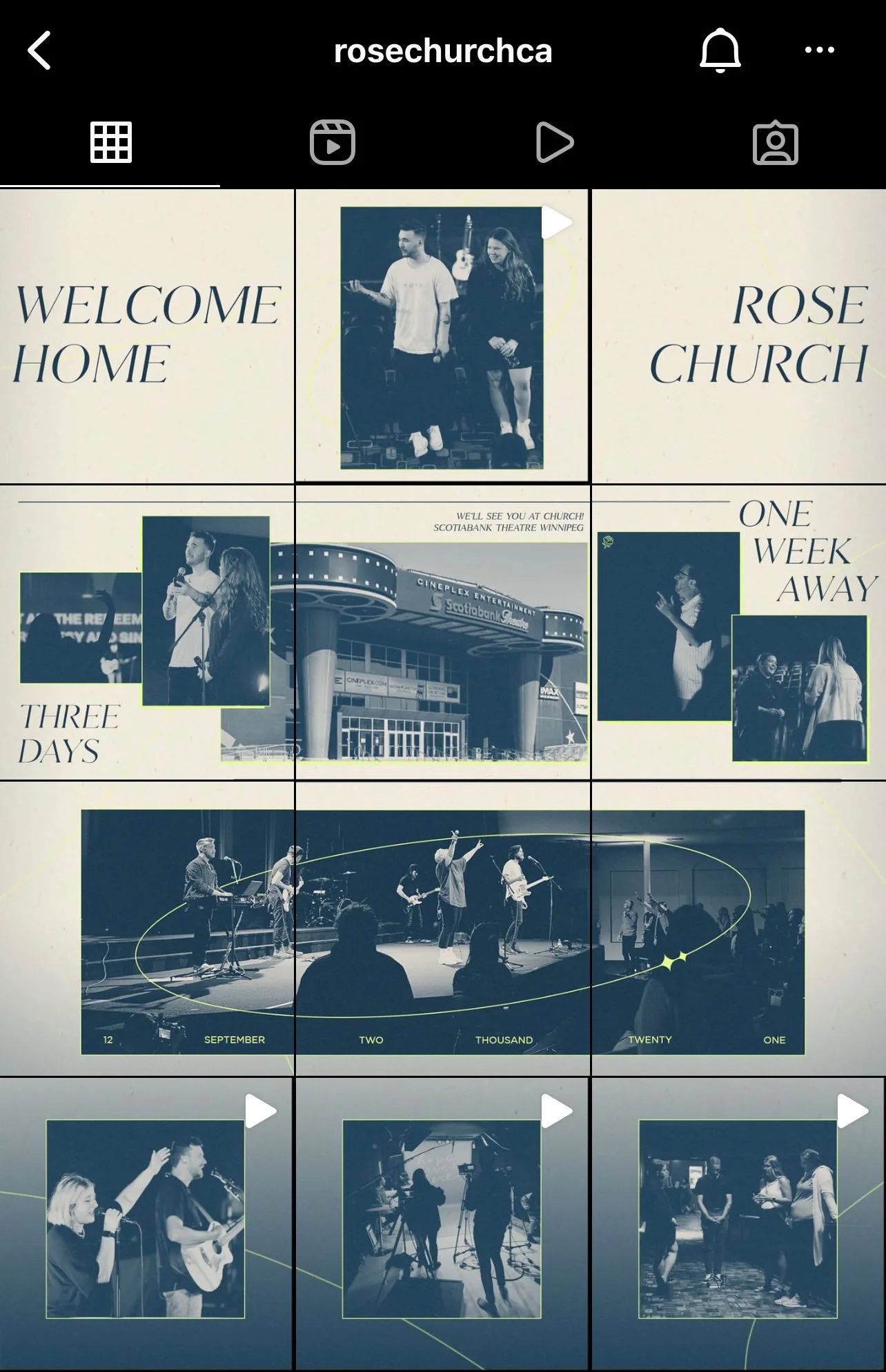 A series of Instagram posts I designed to promote the relaunch of Rose Church services at Scotiabank Theatre Winnipeg following the lifting of Covid restrictions in 2021.